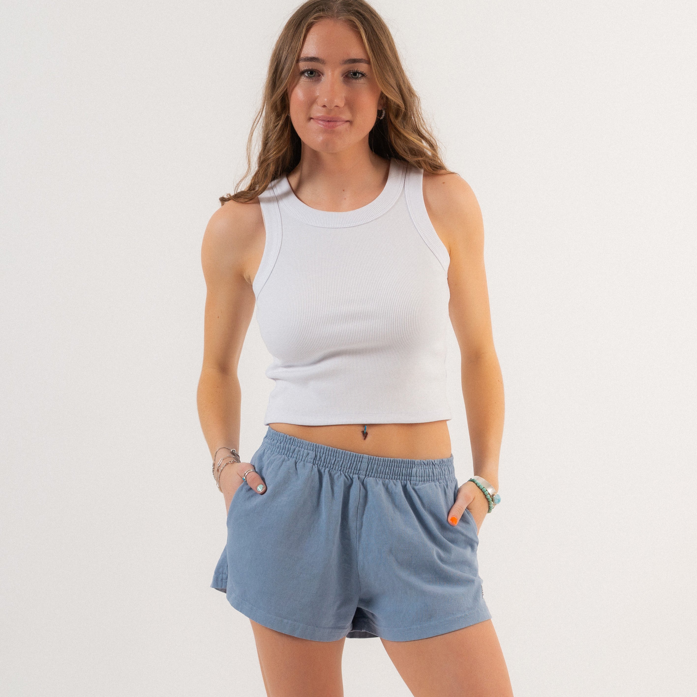 An essential layer that is easy to style, the Organic Rib Crop Tank. Made from organic cotton blended with elastane.
